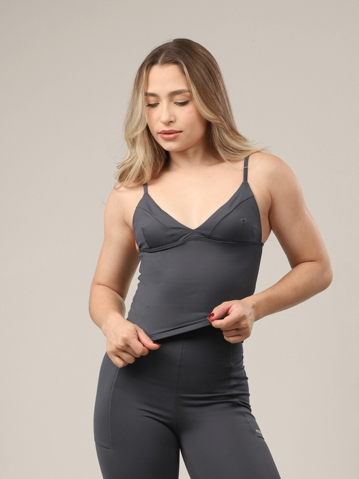 regata carrie, é para bold girls! com design em v, possui decote acentuado, e costas retas. possui recorte no busto – um charme- e elástico em todo o entorno dá uma super segurança na hora do treino.